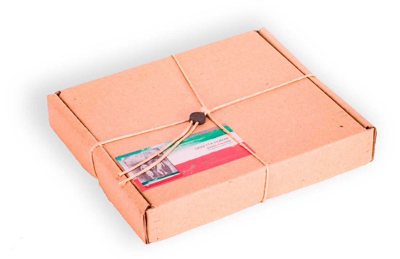 Scatola di cartone sigillata contenente materiali editi in occasione dell'esposizione tenutasi presso Galleria Spazio Contemporaneo, Moncalvo: