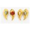 Quattro lampade da parete ad una luce, struttura in metallo dorato con stelo e diffusore in metallo verniciato sovrapposto, due celesti, uno rosso e uno avorio. Usure.