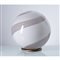 Lampada da tavolo ad una luce, diffusore globulare in vetro lattimo decorato a spirale con murrine marroni, base circolare in ottone. Qualche imperfezione in una piccola parte data dalla cottura.
