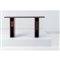 Mobile scrittoio in legno di noce scuro, piano rettangolare, fianchi dritti con piani paralleli, cassetti e vani a giorno.