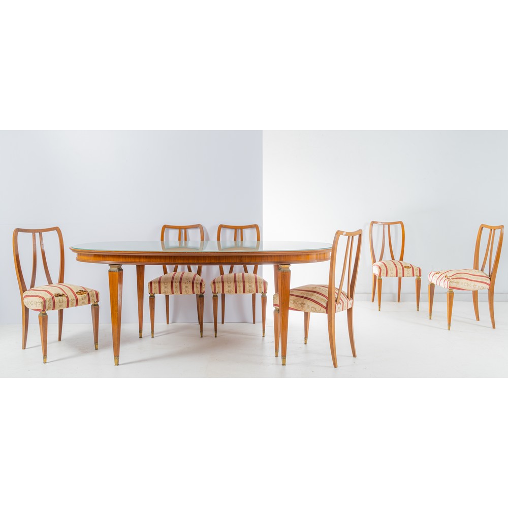 A TABLE AND SIX CHAIRS BY MOBILIFICIO CANTURINO.