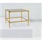Tavolo basso con struttura in ottone lucido a canna di bambù, piano quadrato con vetro.