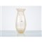 Vaso in vetro soffiato trasparente bullicante con inclusioni oro, corpo ovalizzato con costolature, bocca a coppa sfrangiata.