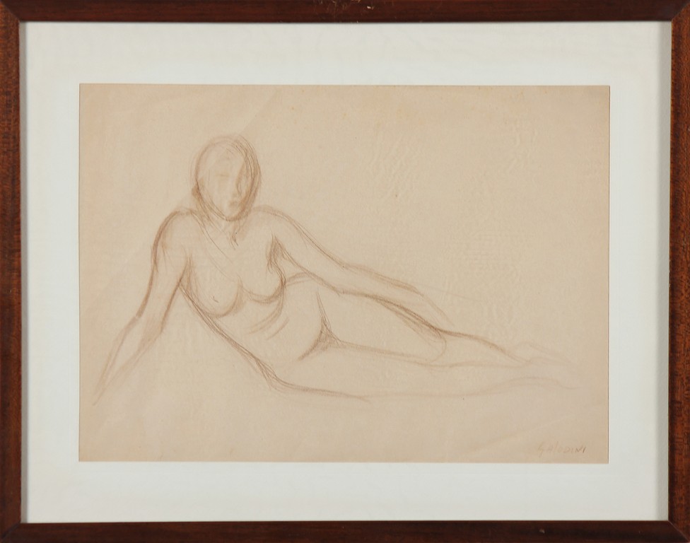 SALODINI CARLO (1903 - 1950) Nudo di donna. Matita su carta. Cm 23,00 x 30,00. Firmato in basso a destra. Cornice presente