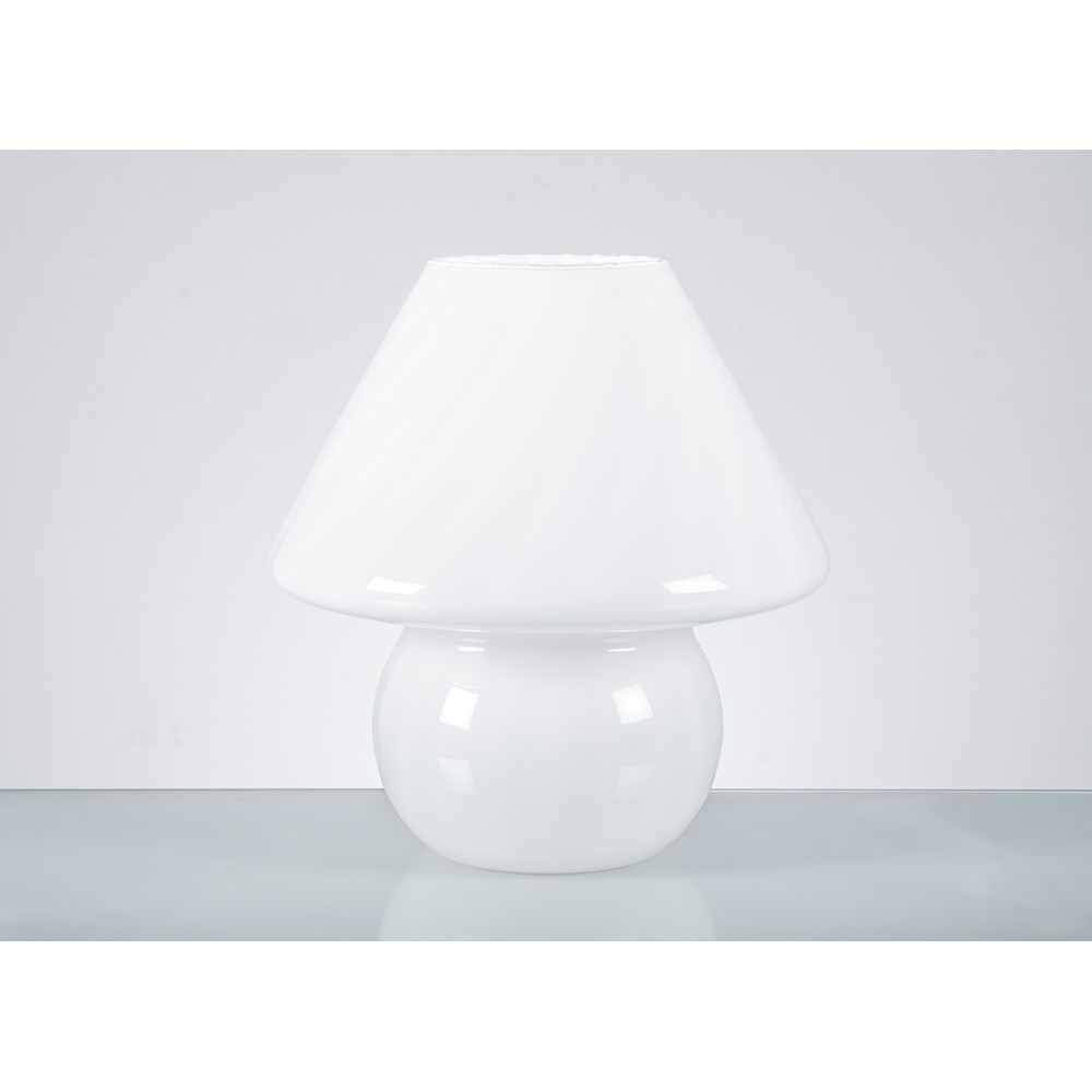 Lampada da tavolo ad una luce “Mushroom”, vetro lattimo con decoro spirale.
