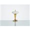 Lampada da tavolo ad una luce, struttura in ottone lucido, diffusore composto da due dischi ovalizzati in vetro a stampo lattimo. Piccola sbeccatura.