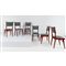 Sei sedie in legno di noce, seduta e spalliera imbottite e rivestite in tessuto grigio.