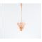 Lampada a sospensione a tre luci in vetro rosa, diffusore conico bullicante ornato da tralci curvati in vetro torchon, fusto a torchon.