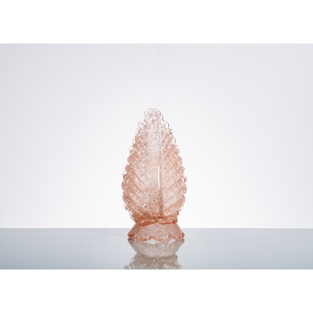 Lampada da tavolo ad una luce in vetro rosa, diffusore a foglia su base a petali.