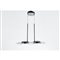 Lampada a sospensione a due luci, struttura in metallo cromato e verniciato nero, diffusore ovale in vetro con alloggio per lampada.