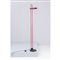 Lampada da terra ad una luce con stelo in metallo tubolare verniciato rosso, diffusore piatto nero e rosso, base circolare nera.