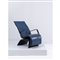 Poltrona Chaise longue modello “Antropovarius”, struttura in metallo e plastica neri, schienale reclinabile, rivestimenti in pelle blu e cuoio.