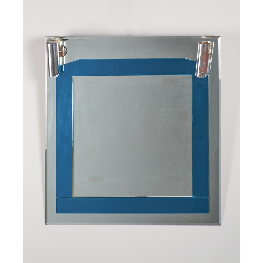 Specchio da bagno in vetro specchiato blu (sbeccature e difetti).