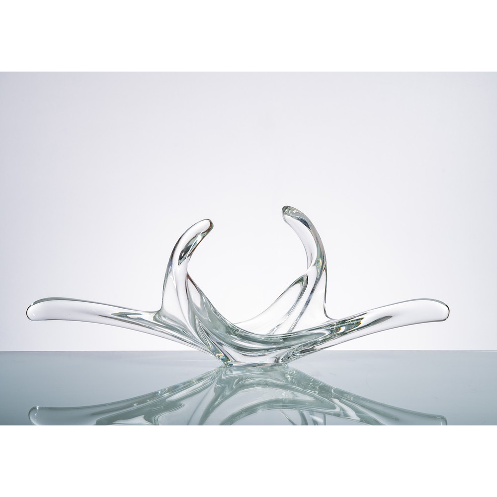 Centrotavola in vetro sommerso trasparente, corpo a portamento libero con quattro movimenti.