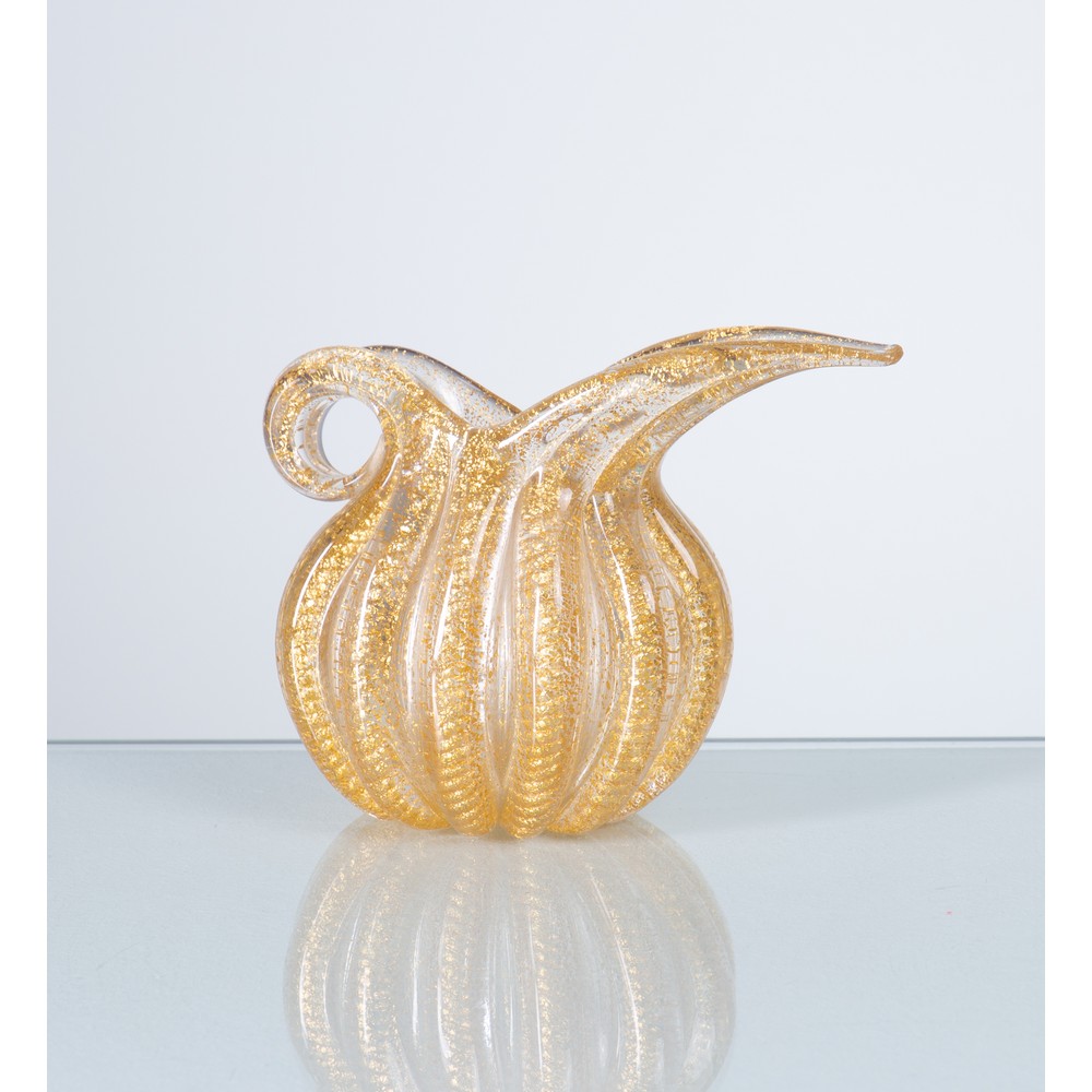 Versatoio in vetro soffiato a grosse costolature retorte e foglia d’oro in vetro di Murano.