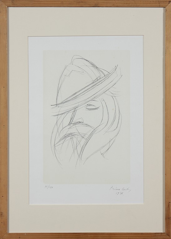 CONTI PRIMO (1900 - 1988) Senza titolo. 1978. Litografia acquerellata. Cm 32,00 x 47,00. Dimensioni lastra: cm36.5x23.5. Firma e anno in basso a destra. Tir.11/120. Cornice presente