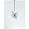 Lampada a sospensione a nove luvi modello "Sputnik", corpo circolare con struttura in metallo cromato ed elementi a goccia in vetro massiccio trasparente lavorato a caldo.