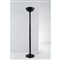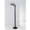 Lampada da terra ad una luce, struttura in metallo verniciato nero, diffusore orientabile semisferico collegato all’asta con tubo mobile in metallo cromato, base circolare.