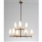 Lampada a sospensione a nove luci, corpo a piramide su due livelli, struttura in ottone con diffusori conici in vetro opalino.
