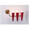 Lampada da parete a tre luci, struttura in ottone, diffusori conici in metallo verniciato rosso. Graffi sui diffusori.