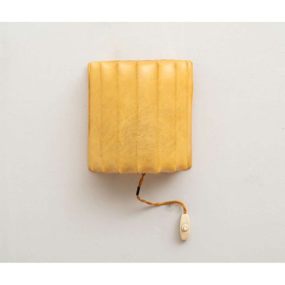 Lampada da parete ad una luce, corpo semicilindrico, struttura in metallo verniciato e rivestito in cocoon.