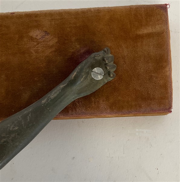 Scultore del secolo XIX. Cristo crocifisso, bronzo su croce rivestita in vellut