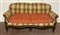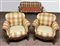 Fornitura da salotto composta da divano e coppia di poltrone in legno intagliat