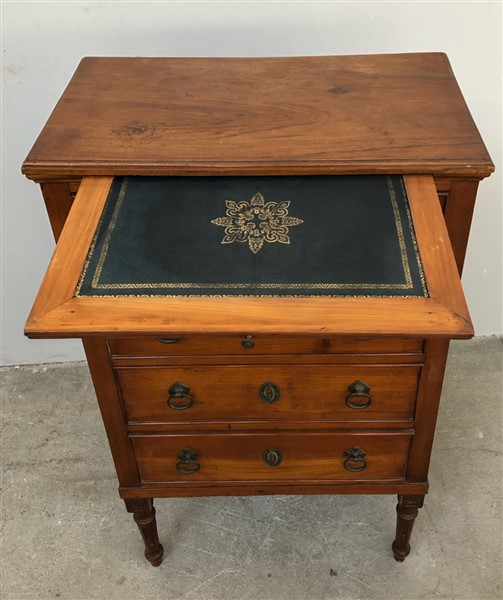 Mobiletto in ciliegio a quattro cassetti e tablette sotto piano con riserva in pelle, gambe scanalate e intagliate, fine secolo XVIII (cm 66x100x36) (difetti e restauri)