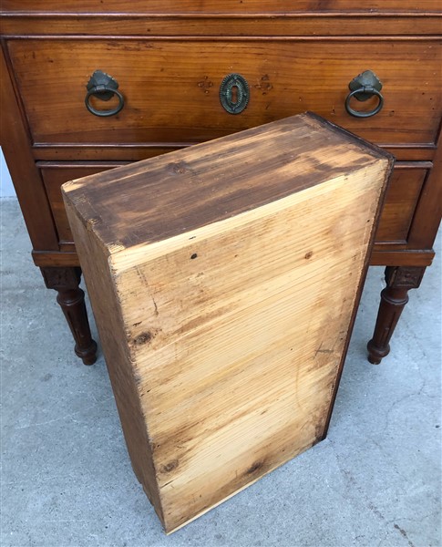 Mobiletto in ciliegio a quattro cassetti e tablette sotto piano con riserva in