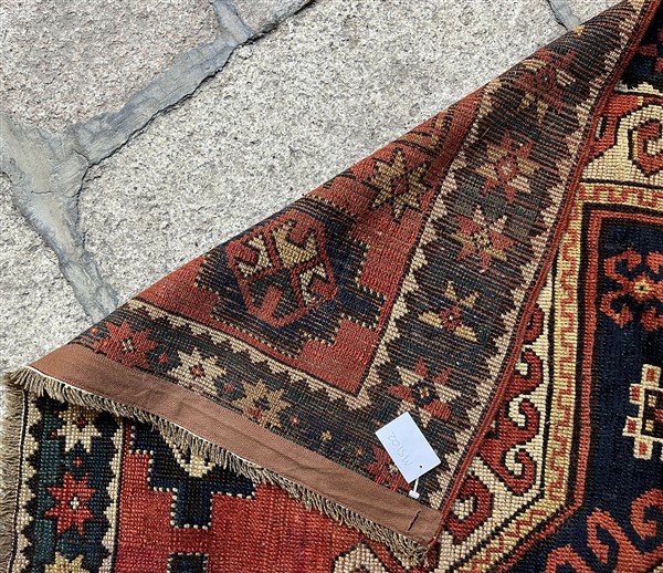 Tappeto Kazak, Caucaso, fine secolo XIX. Decoro con medaglione romboidale su fo
