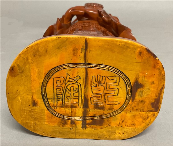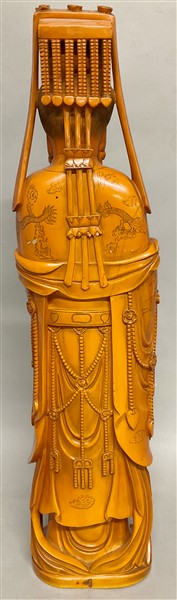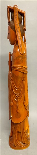 Grande figura femminile in resina su base in legno Cina, secolo XX (h. cm 59)