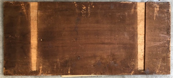 Ignoto, da Francesco Bonsignori, antico dipinto ad olio su tavola raffigurante Madonna con bambino e santi, cm 43,5x99,5 (difetti e restauri)