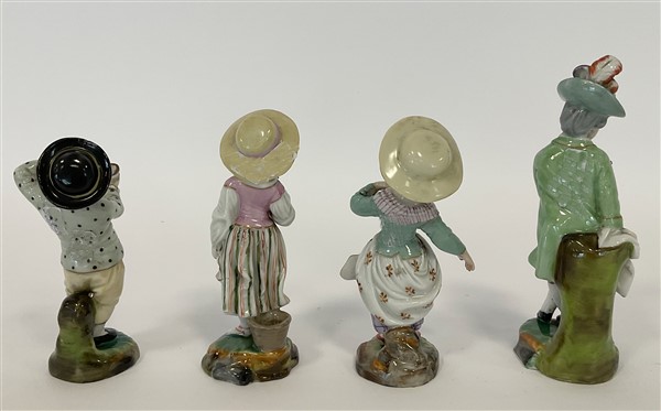 Manifattura di Hochst, secolo XIX - XX. Lotto composto da quattro diverse figur