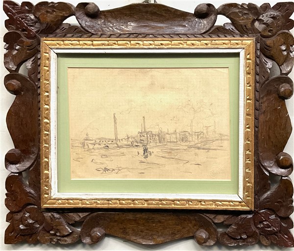 Carlo Erba "Paesaggio urbano periferico" matita su carta (cm 15x21) Reca timbro