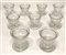 Nove coppe da caviale in cristallo e vetro inciso a motivo stilizzato e profilo