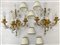 Coppia di appliques in metallo dorato a tre bracci con pendenti a frutti e fogl