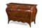 Comò di forma bombata, lastronato in radica e filettato in bois de rose e bosso
