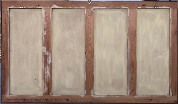 Ignoto del XX secolo "Litorale con pescatori" olio su masonite (cm 107x183) In