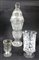 Una potiche con coperchio in cristallo molato unita a due vasi in vetro inciso