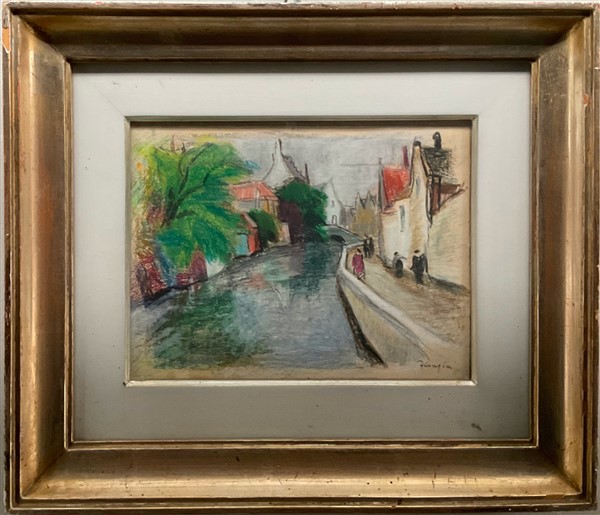 "St. Boniface - Belgio", pastello su carta applicata su tela (cm 18x24) Firmata in basso a destra. Al retro: timbro e cartiglio. In cornice