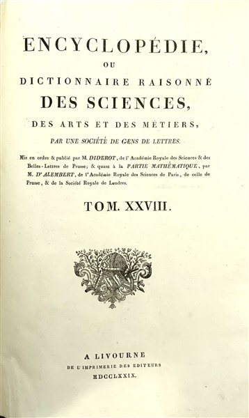 DIDEROT, D'ALEMBERT, Livorno 1779. Volume contenente 194 incisioni fuori testo,