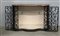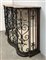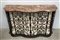 Antica balaustra montata a mobile bar di forma mossa in ferro forgiato e ritorto a due ante, piano in marmo macchia vecchia sagomato (cm 157x101x47) (difetti)