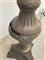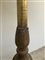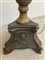 Grande torciera in metallo sbalzato con fusto a balaustro e base tripode, adatt