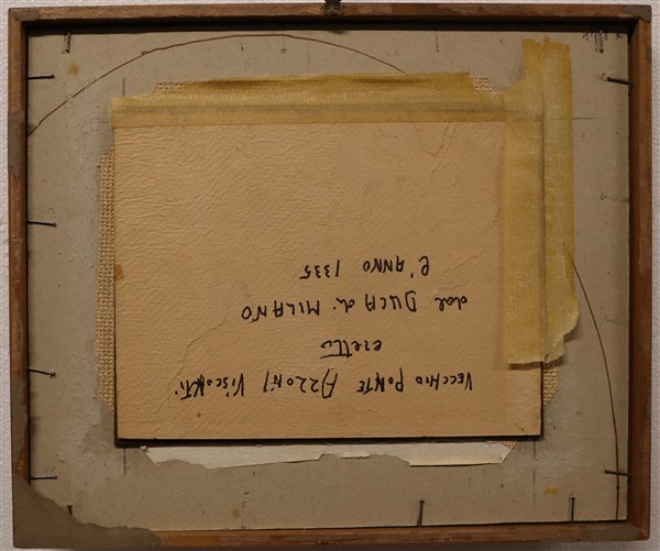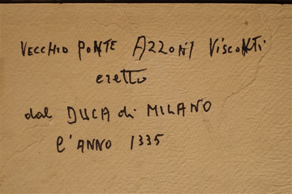 Stampa su cartoncino ritoccata a mano raffigurante "Il Ponte Azzoni Visconti pr