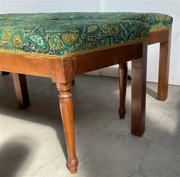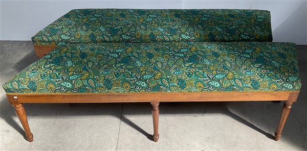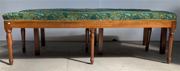 Coppia di panche in ciliegio, gambe anteriori tornite. Secolo XIX (L. max cm 165) (difetti)