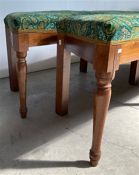 Coppia di panche in ciliegio, gambe anteriori tornite. Secolo XIX (L. max cm 16