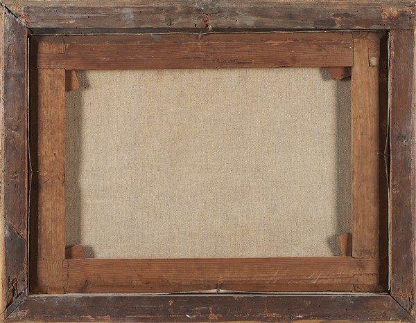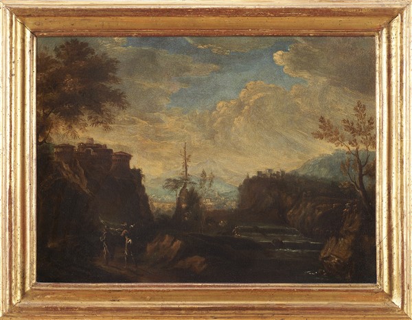 North italian school, 18th century Landscape with figures Oil on canvas, cm 39x54 Framed (defects)