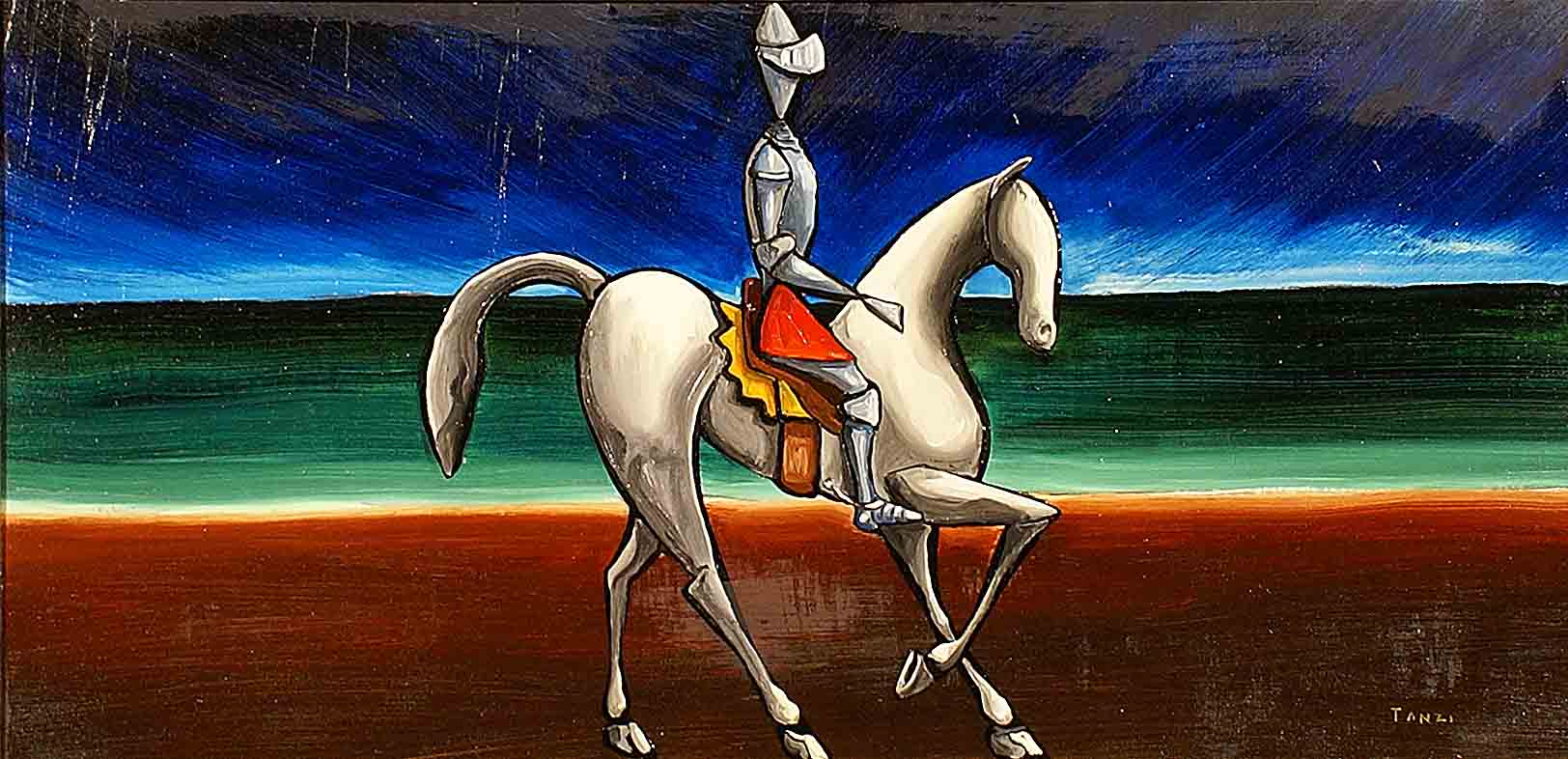 Gaetano Tanzi (Genova 1918 - ), "Il Cavaliere e il mare", acrilico su tavola,...