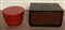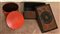 Baule in legno intagliato e dipinto in policromia (cm 70x42x45) unito ad un contenitore circolare in legno laccato rosso. Sud-est asiatico (h. cm 33 d. cm 48) (difetti)