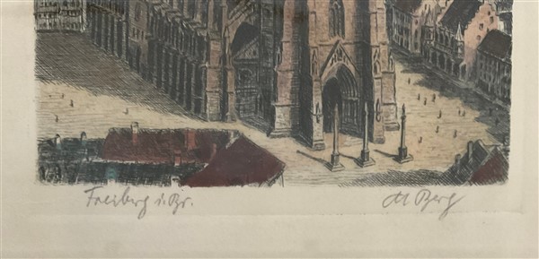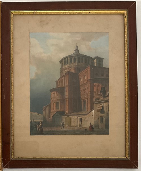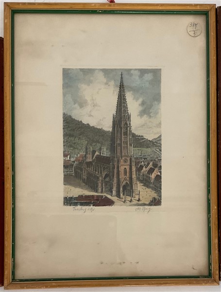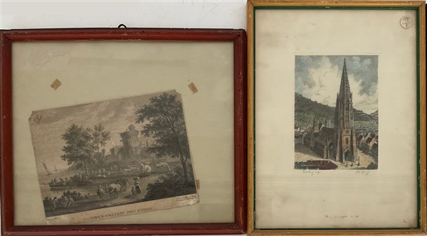 Lotto di tre incisioni raffiguranti paesaggi e cattedrali misure diverse (difet